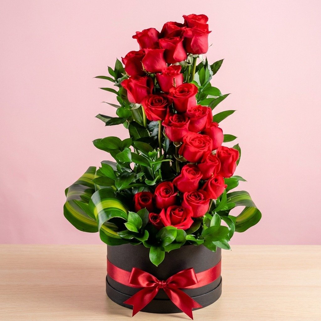 El Arreglo floral Amor Ascendente es la elección ideal para expresar amor, pasión y cariño hacia esa persona tan especial en tu vida. Elaborado con rosas rojas frescas, cuidadosamente seleccionadas por nuestros floristas, este diseño simboliza la fuerza del amor verdadero y la intensidad de los sentimientos. Cada rosa ha sido colocada con dedicación en una caja elegante y moderna, que le da un toque sofisticado y convierte este arreglo en un regalo memorable.