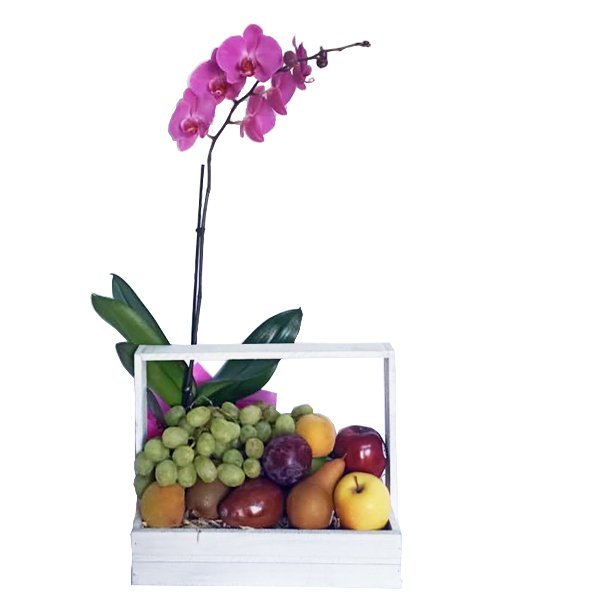 Caja con frutas y orquidea / Frutal con orquidea