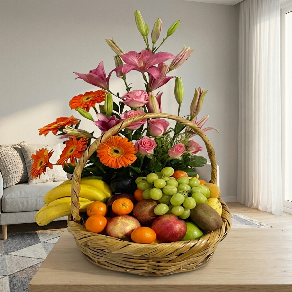 Canasta frutal a domicilio / Dulce Armonía de Frutas y Flores