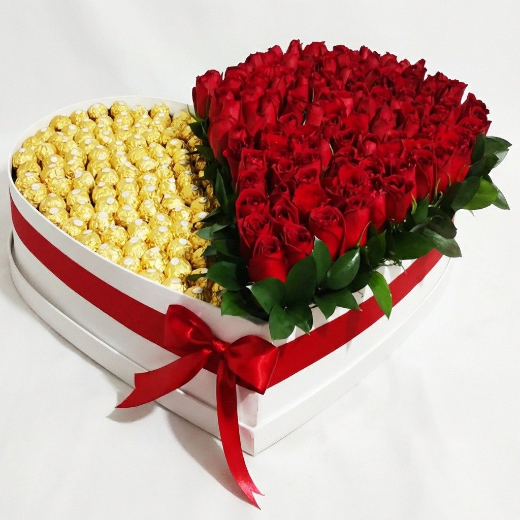 Corazón con rosas y Ferrero Rocher