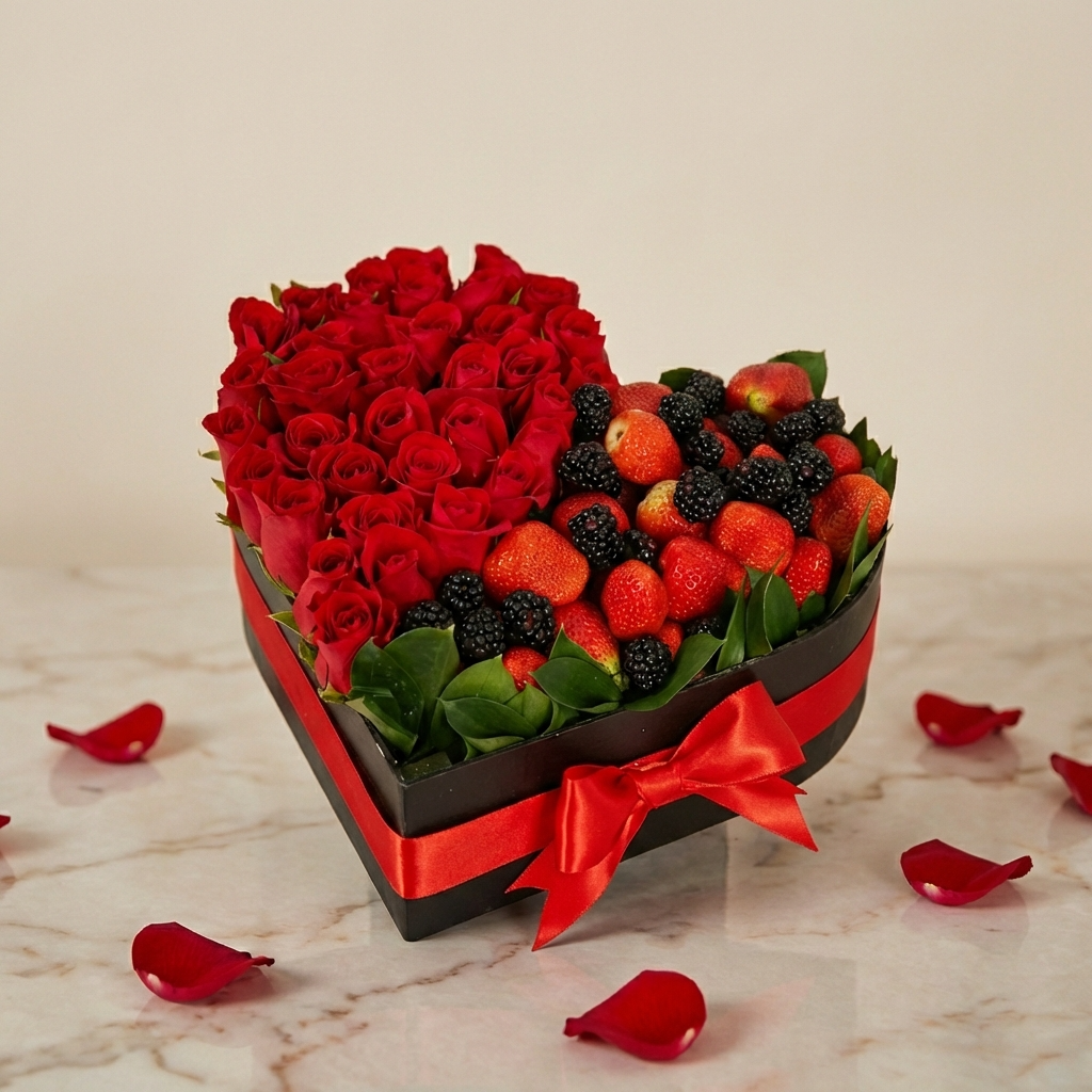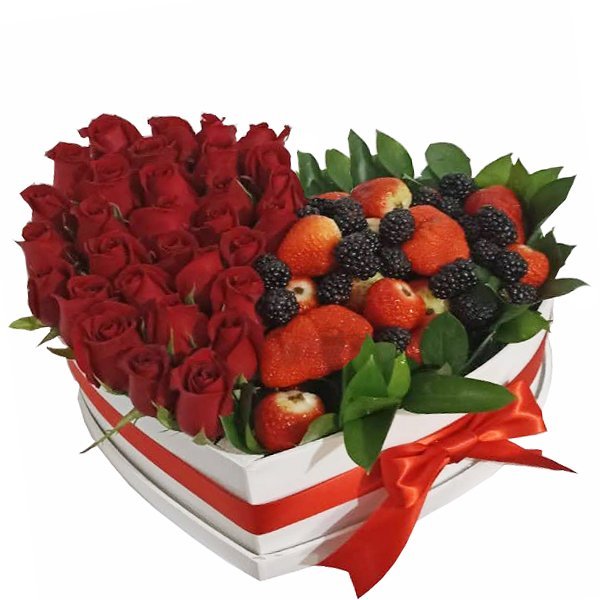Corazón de rosas y fresas