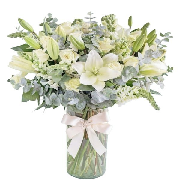 Flores blancas en cilindro